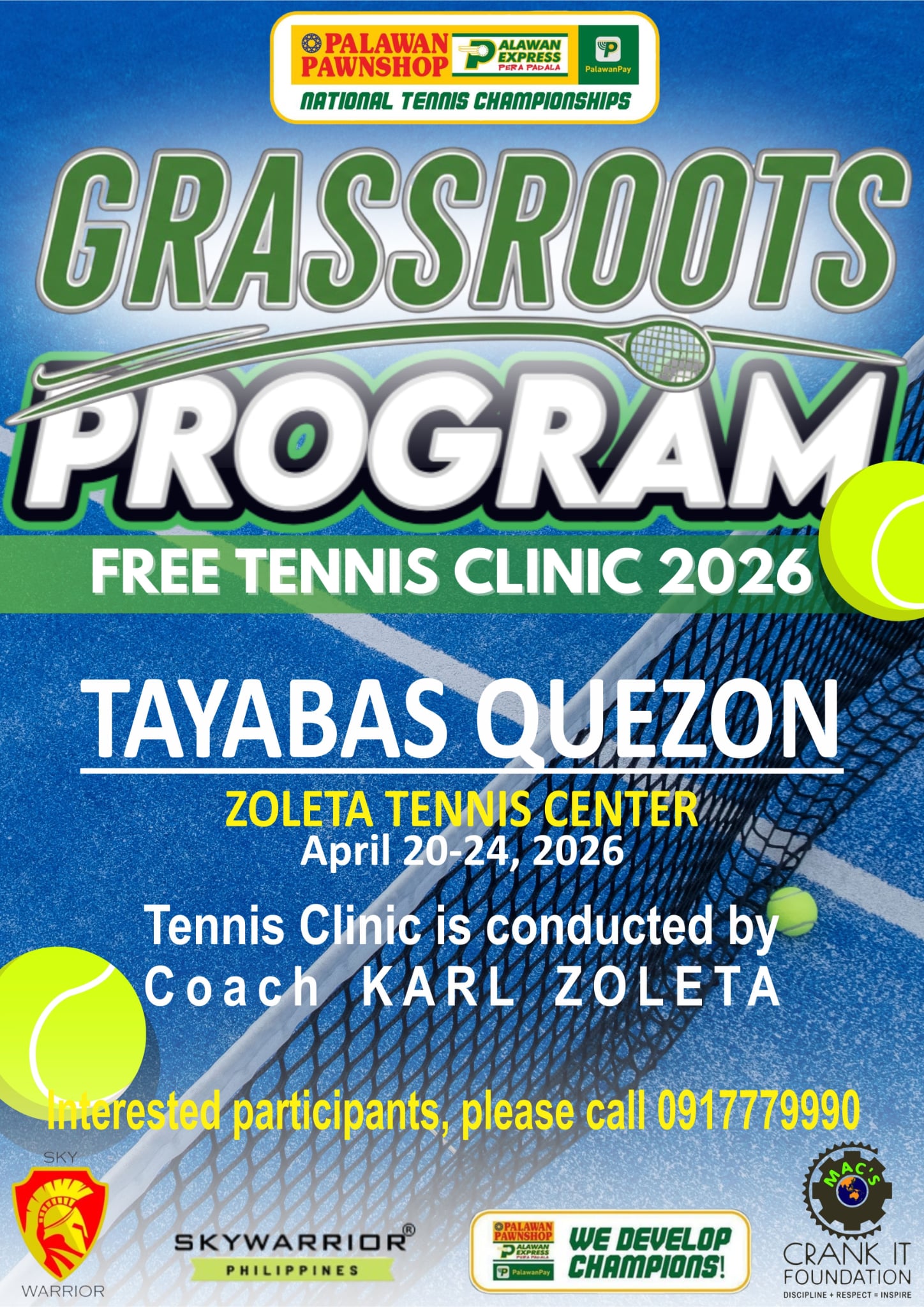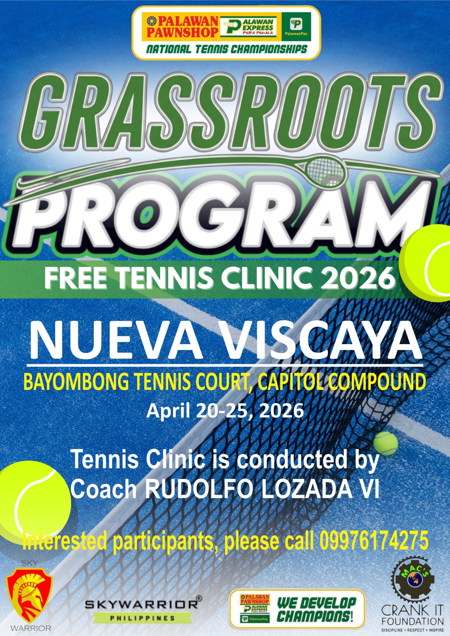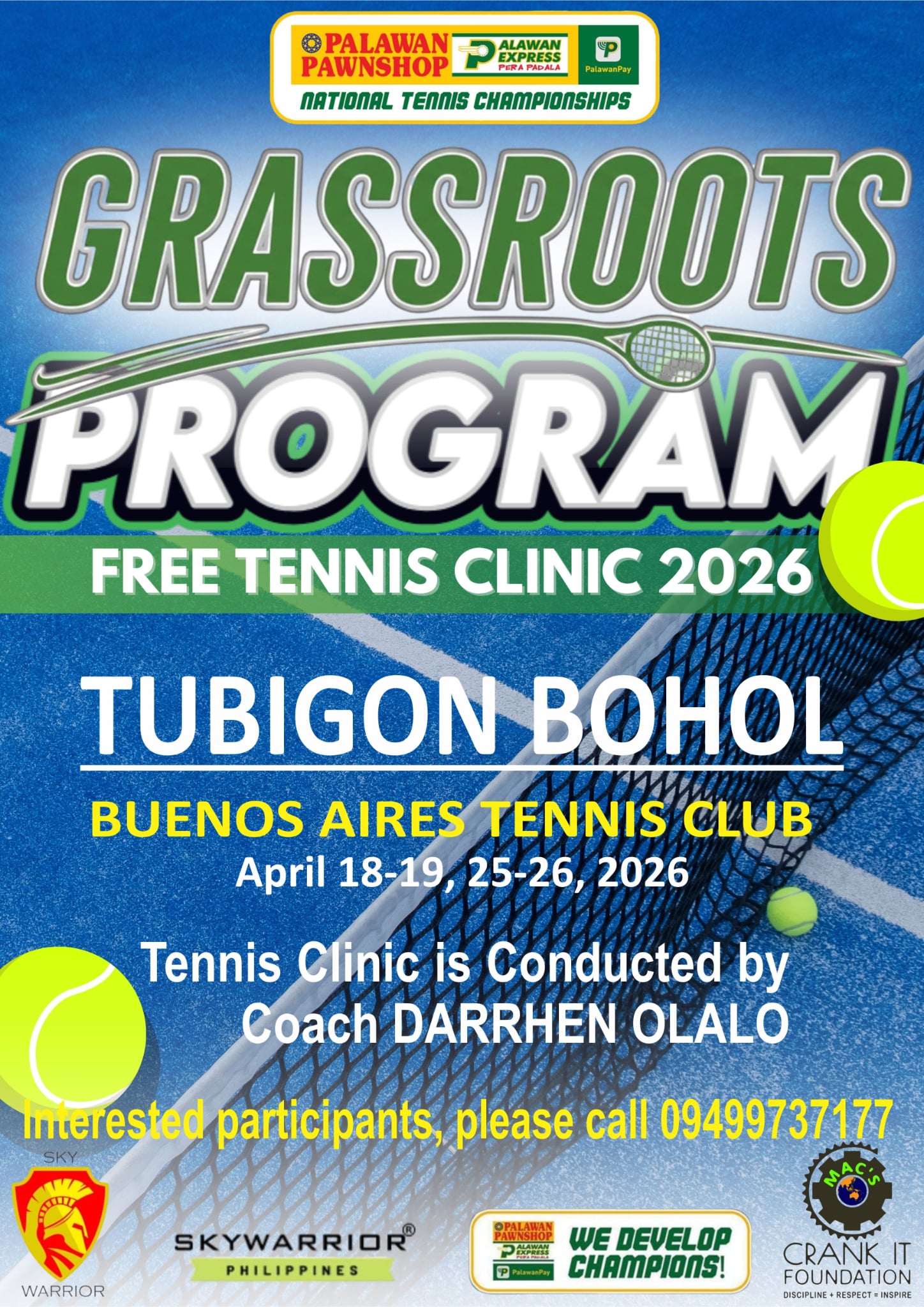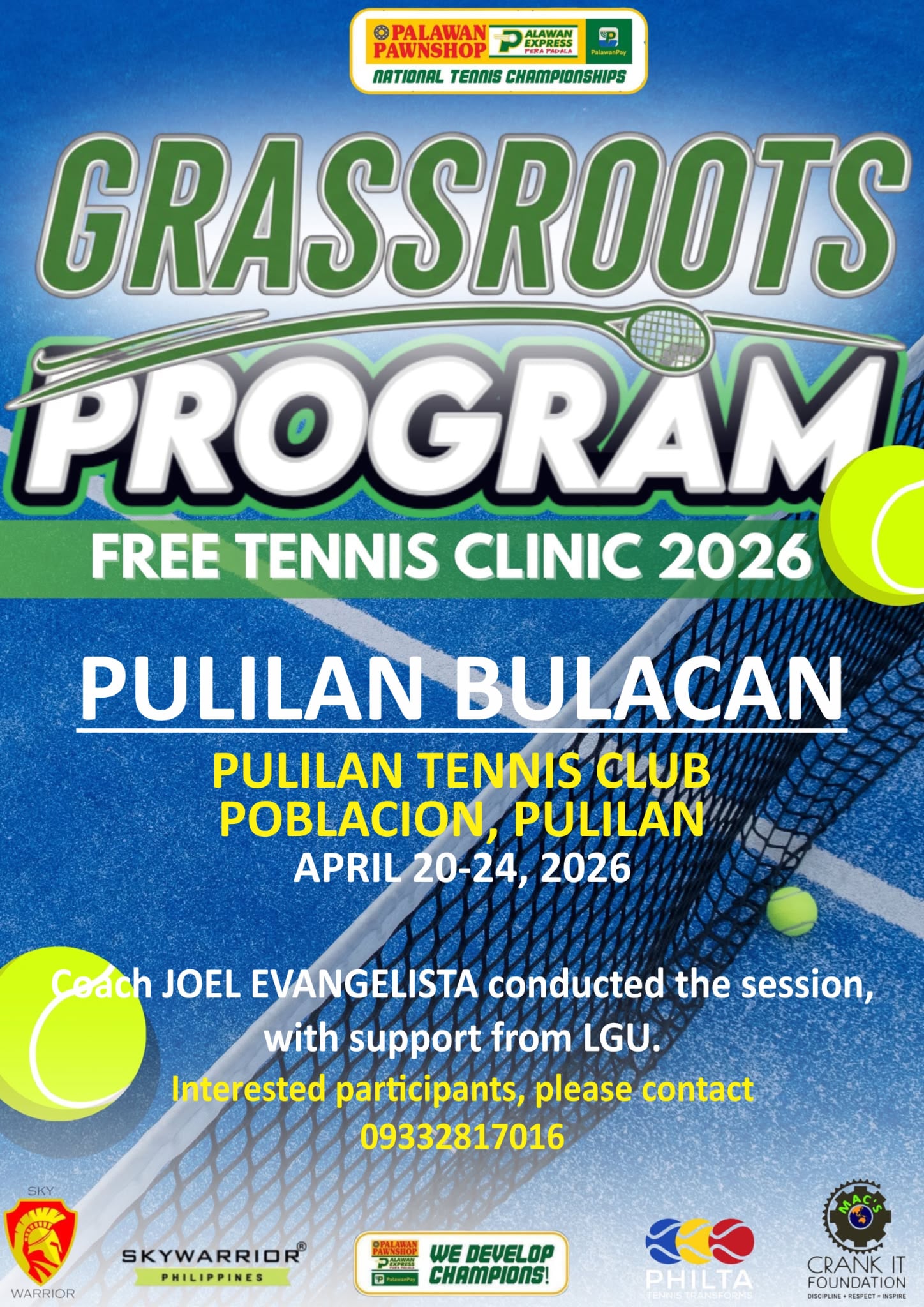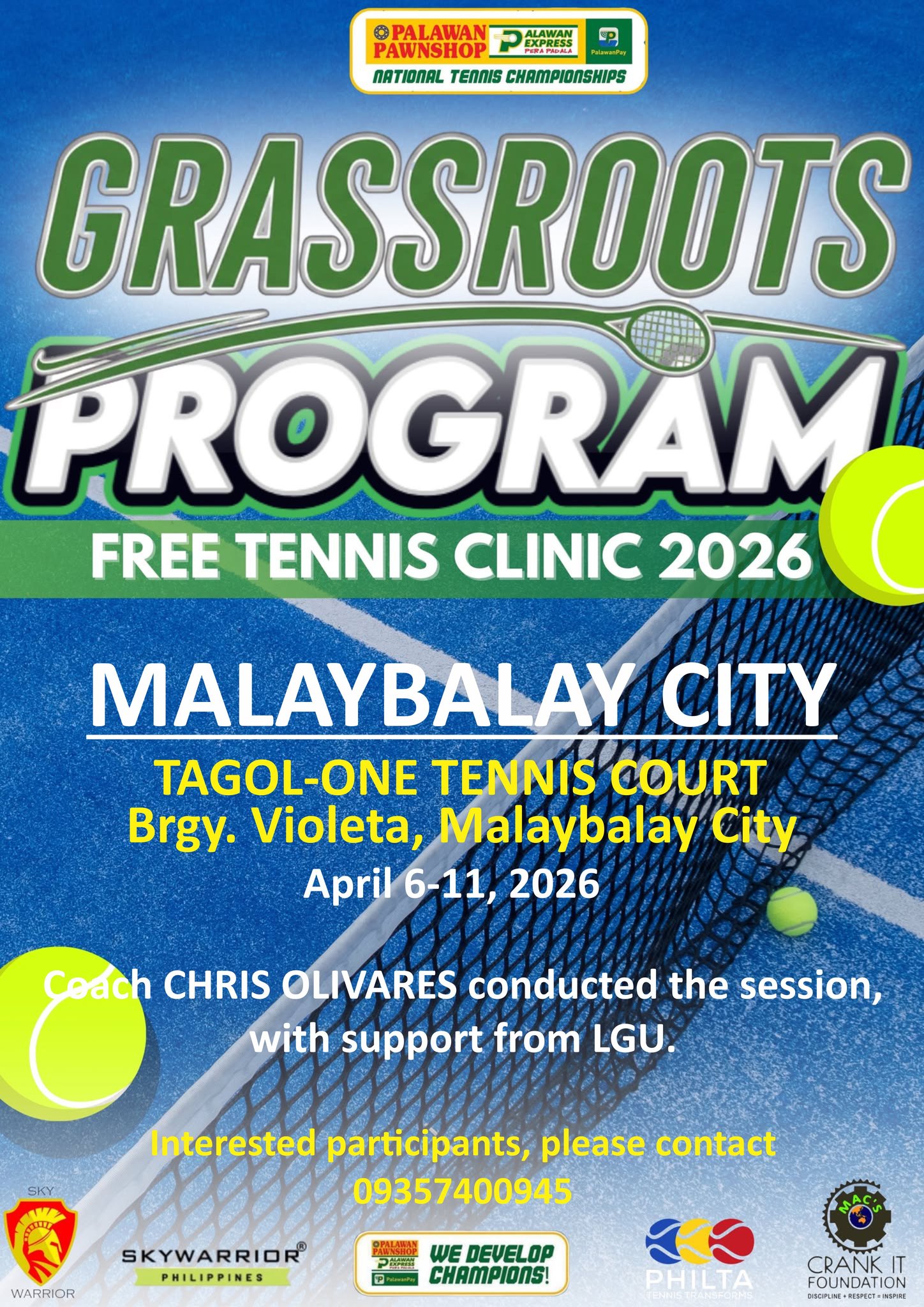 The Palawan Pawnshop National Tennis Championships is a prominent series of tennis tournaments in the Philippines, organized by Palawan Pawnshop to support and develop local tennis talent. The Palawan Pawnshop National Tennis Championships aim to identify and nurture the next generation of Filipino tennis stars by providing a platform for young athletes to showcase and enhance their skills. This nationwide talent search, sponsored by Palawan Pawnshop and led by CEO Bobby Castro, is dedicated to discovering and developing young tennis prospects, contributing to the growth of tennis in the Philippines.